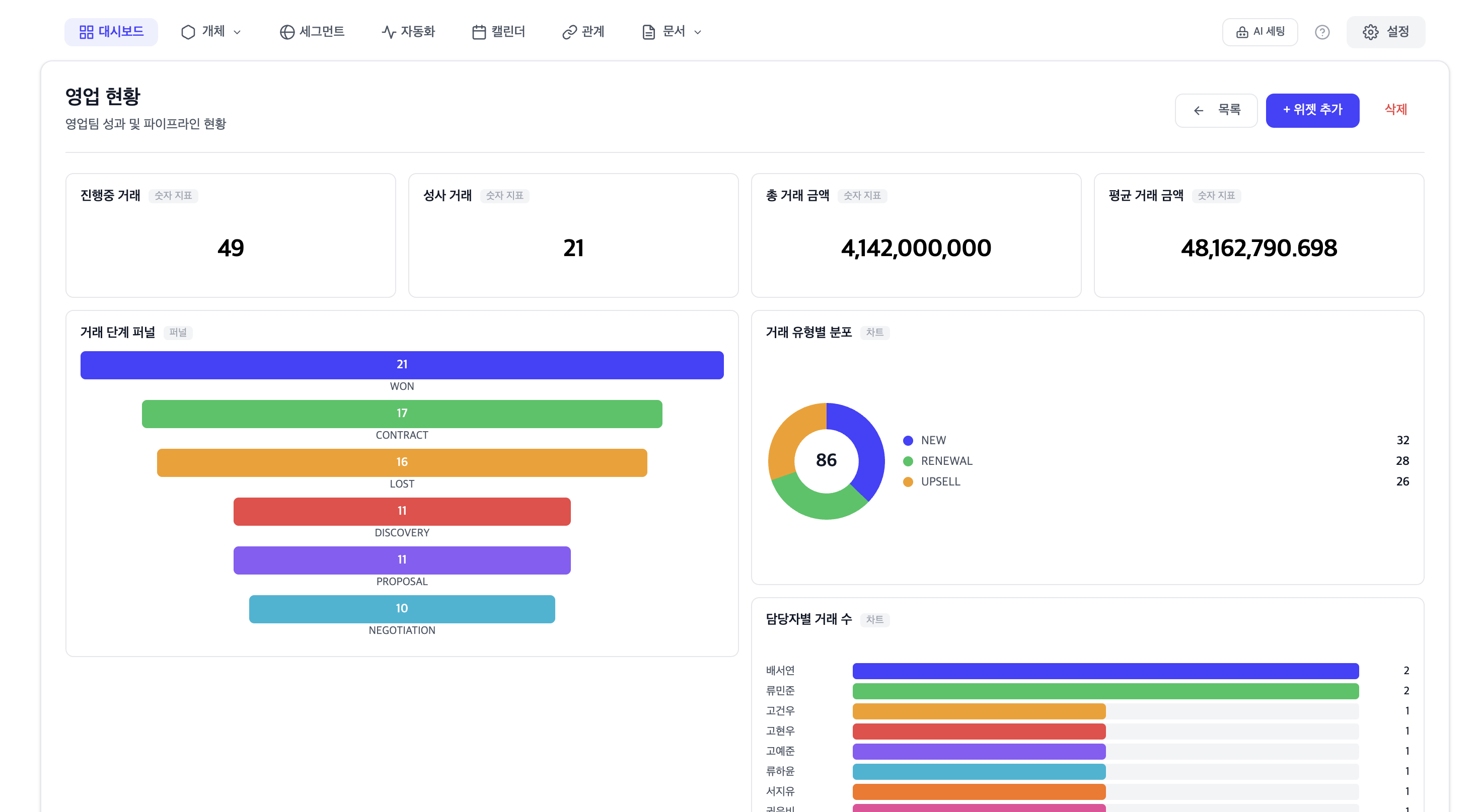 칸반 보드로 영업 단계를 시각화하고 추적실시간 대시보드